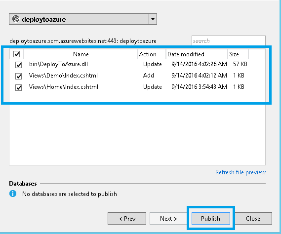 Start Preview will list all the files which will be deployed, once clicked on Publish.