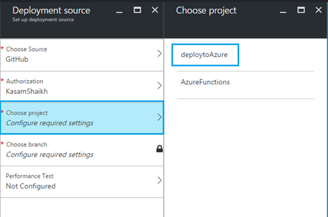 Now, it's time to select repository or project to be selected as file source. As seen below, all repositories are listed for selection. Here, we will select 'deploytoAzure'.