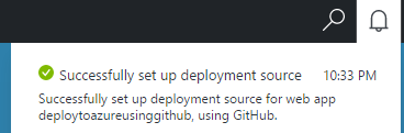 The below notification will get displayed, stating our set up to be completed successfully. Also, this will deploy files from repository to Azure web app.