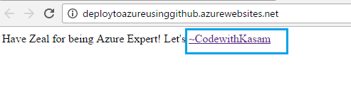 Let's do one more round of testing. Modify index.html from deploytoAzure repository, with adding hyperlink, as shown in the below image.