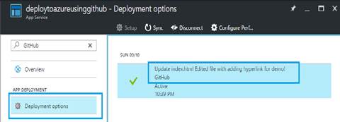 Also, we can view this commit comment ( highlighted in above image ) and deployed file logs in Azure Portal, under Deployment options.