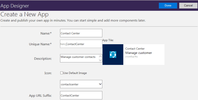 Now, let’s say, we want to design our own custom app, where we want to combine a logical grouping of the existing entities. Let’s suppose that we want to create a custom app called Contact Center, where we want to manage customer contacts. We use steps given below to create our custom app.