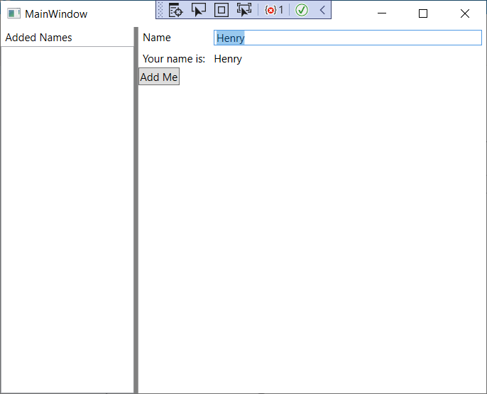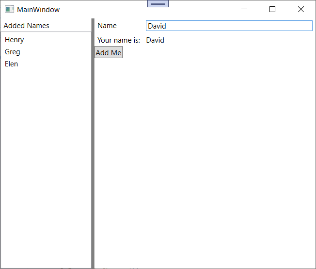 - <ListBox ItemsSource="{Binding AddedNames}"></ListBox>