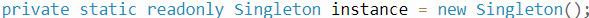 private static readonly Singleton instance = new Singleton();