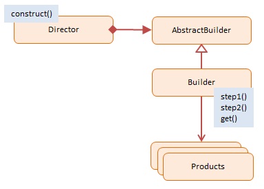 Builder pattern allows you to create objects by specifying type and content. Client will not know the details of what happens in the background but will know the steps taken till the work ends.