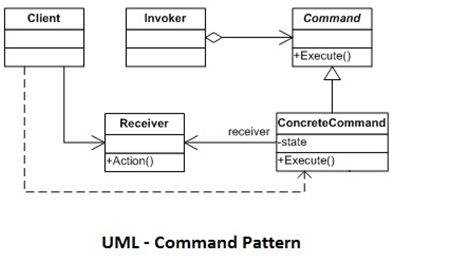 - Client: First creates Concreate Command objects bysetting the receiver then calls the Invoker by setting the concreate command objects.