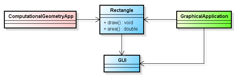- If changes in Graphical Application affect the Rectangle class, this means we would have to rebuild, retest and redeploy the Geometry Application. What if we forget to do this? Our Geometry application might break in unexpected ways.