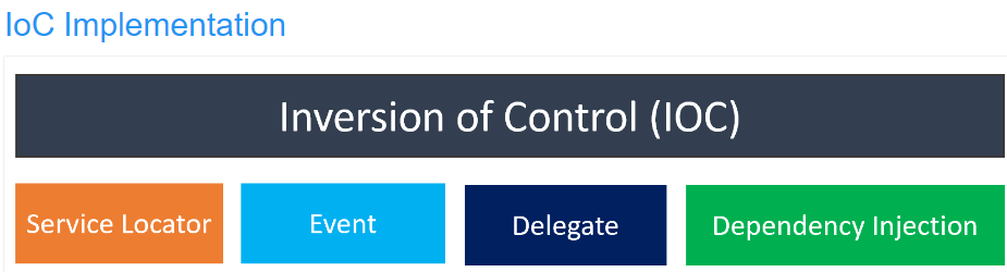 As discussed above IoC is a generic term for a program workflow to be inverted. The implementation is usually the Dependency Injection, but not limited to DI. In general, there are more than several ways to implement the IoC, such as