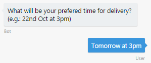 Get the address from results parameter and save it to dialogData of the session. Prompt for the time for delivery. Wait for user input which should be of type