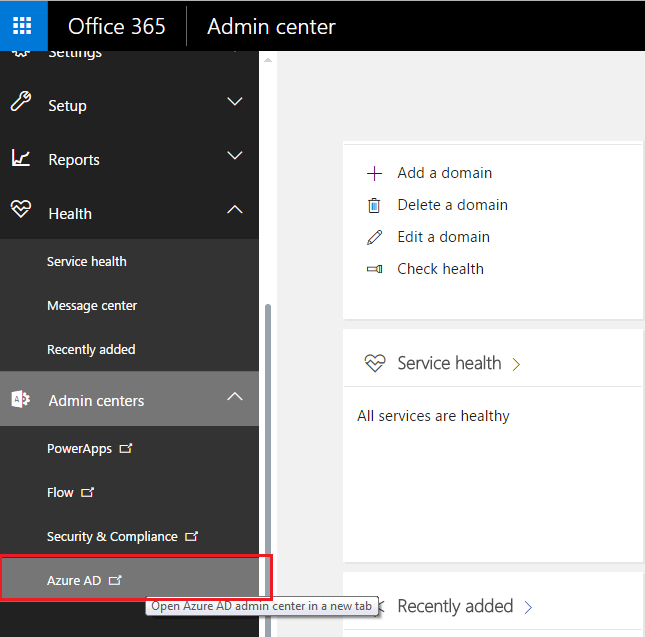- Go here and create your Azure AD account by clicking on Azure AD in Office 365 Admin Center.