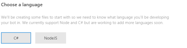- Select the language for Bot service. In this example, I have selected C# language for my bot service.