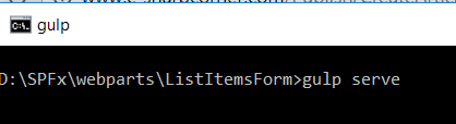 First, let us test the web part using the workbench file. By running the following command on command prompt, you can preview the web part on the workbench page. Make sure you are running the command from the respective web part project folder.