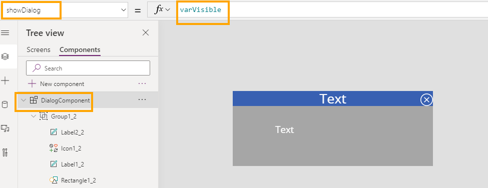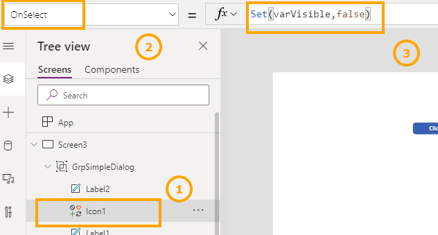 Step 7 - Select the icon and set OnSelect property to set varVisible as false