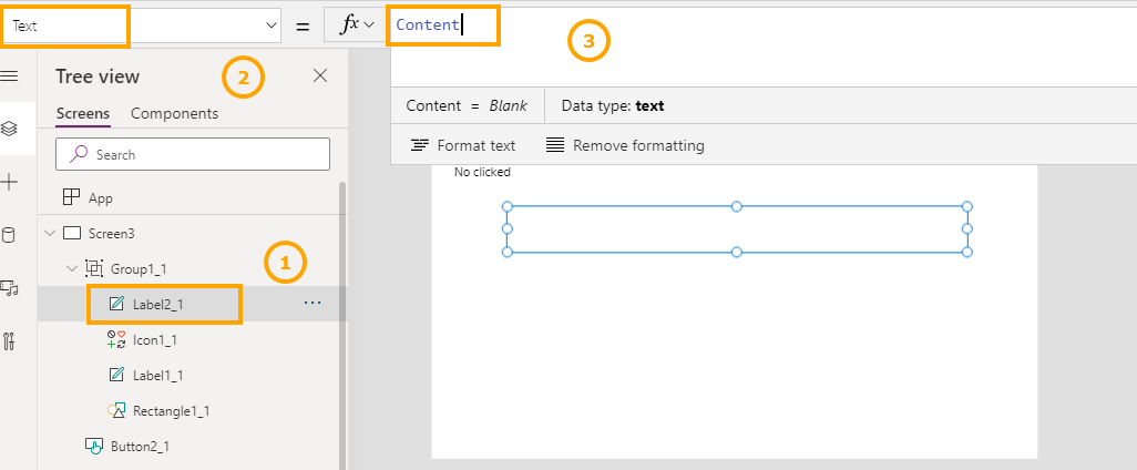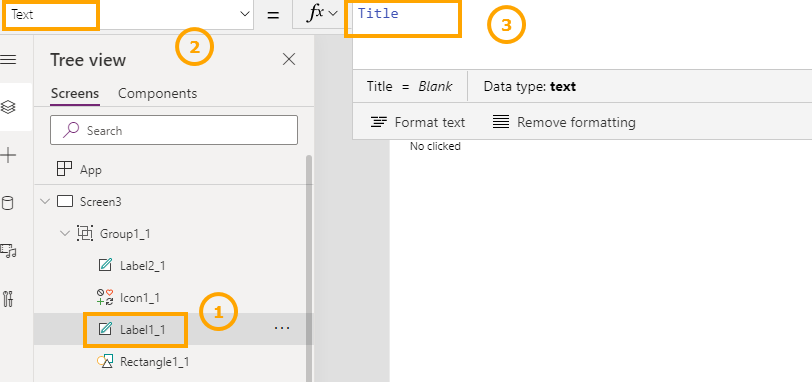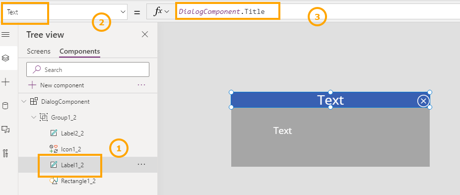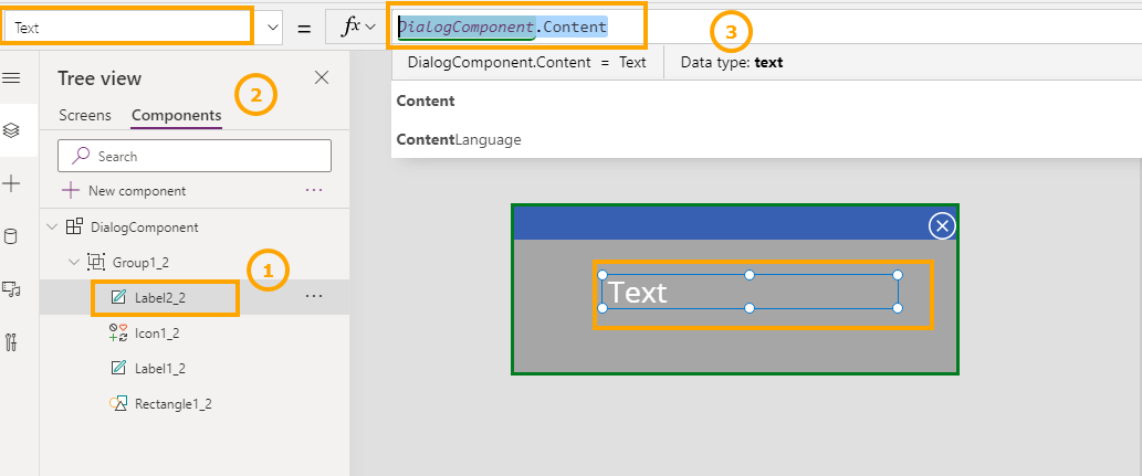Step 27 - Add Text property for Label, as ComponentName.Content