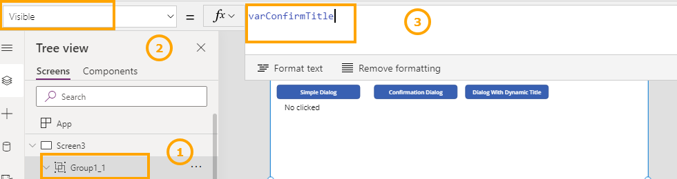 Step 20 - Set Visible of Group to the varConfirmTitle