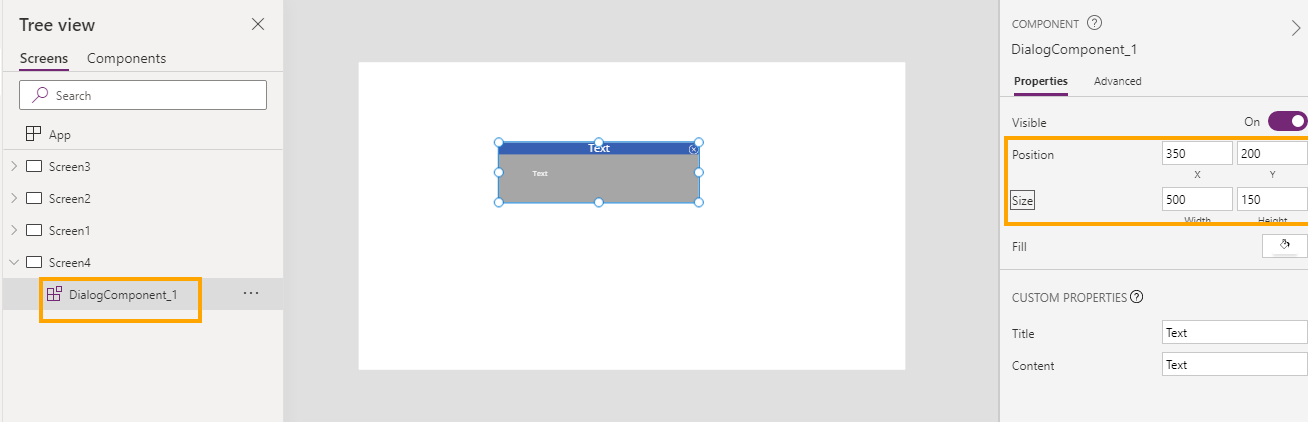 Step 31 - After adding Dialog to the screen, set Width and Height