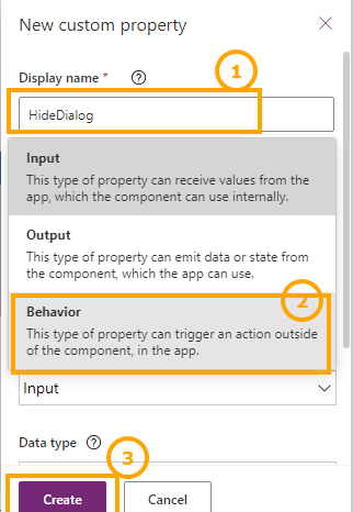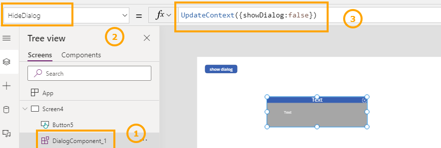 Step 36 - Now go to screen > select HideDialog property and Reset(ComponentName)