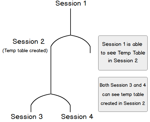 - Temporary tables are visible in the created routine and also in the child routines. Whereas, Table variables are only visible in the created routine (see D.1: Time Scale).