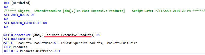 In fact, the top part of the script is a native Stored Procedure from Northwind database: