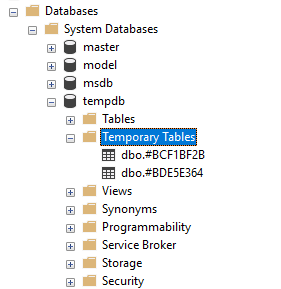 then Check the tempdb, the Temporaty Table, we can see some temp table creaed (why two, not sure):