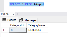 INSERT INTO #input([CategoryID], [CategoryName]) VALUES(9,'SeaFood4')