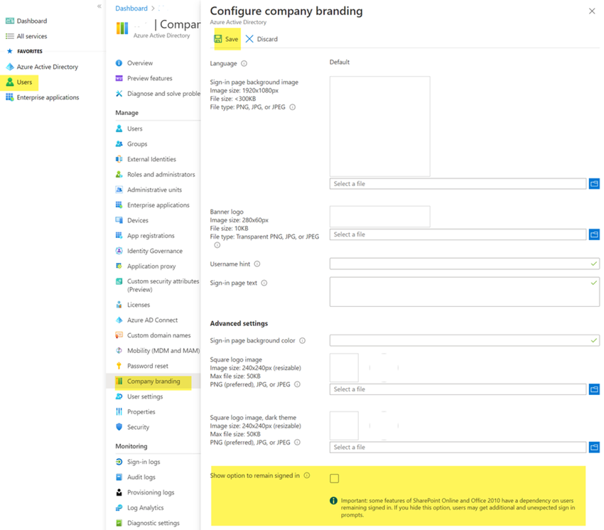 - Under Manage select Company branding followed by the appropriate Locale policy.