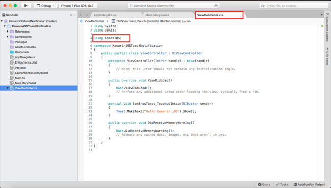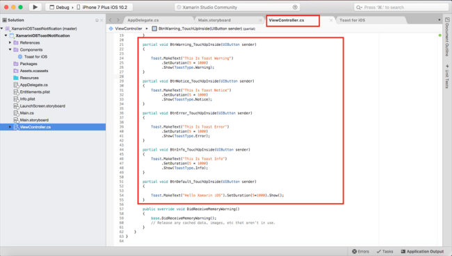 The steps given below are required to be followed in order to display a Toast notification with types in Xamarin iOS, using Xamarin Studio.