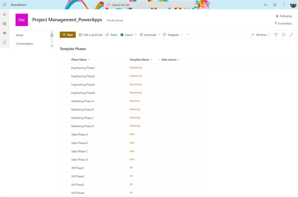 For this first, we need to create a collection “colCreatedProjectRecord” and save the Project-related control in this using the below code. Then create another collection “Phase_info” and save the Phase Information.