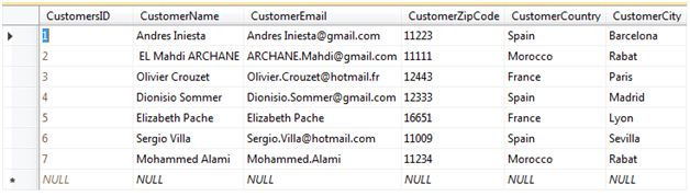 After creating the table, you can fill it using, for example, the data rows as shown below: