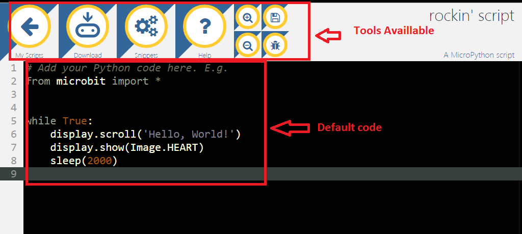 - Download - This is used to compile your Python code and download HEX file to run on Micro:Bit.