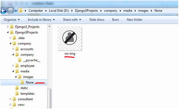 Create a folder named ‘None’ inside media/images as shown below and place ‘no-img’ picture inside it as shown below