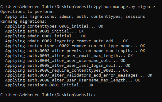 This command is responsible for creating new migrations based on the changes we have made to our models. After exeuting the above command you’ll see following message appearing on your screen.