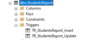Now we shall create an After Insert Trigger on the StudentsReport table