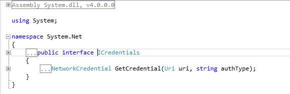 - NetworkCredential NCredentials = new NetworkCredential("userNmae","passWord","DomainName");