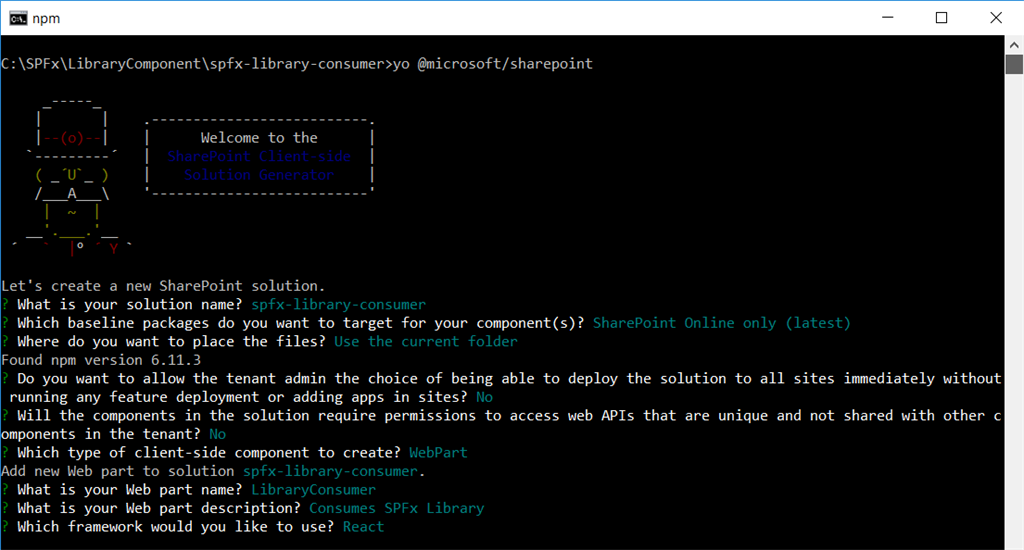 Let’s implement a web part named spfx-library-consumer to consume the above library component.