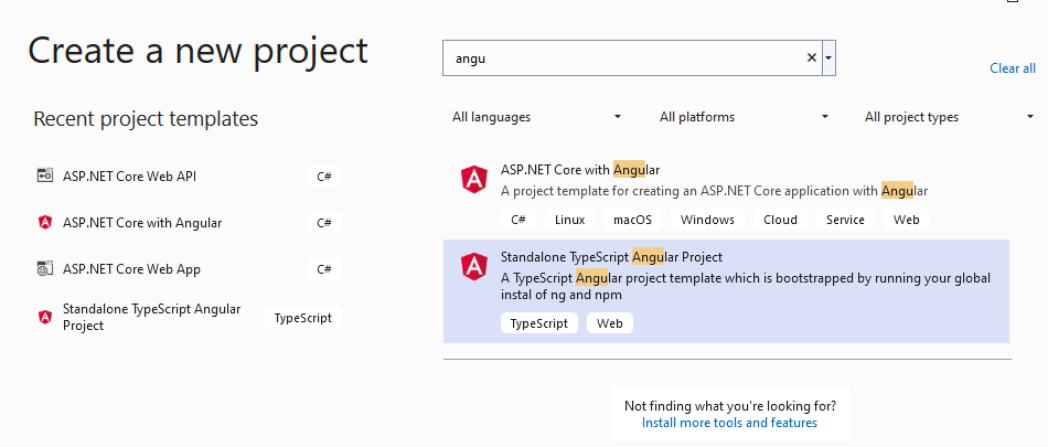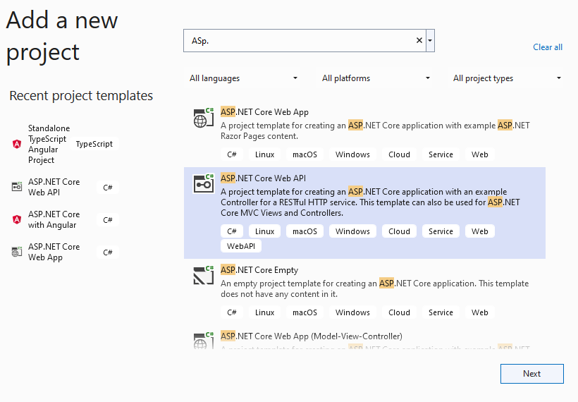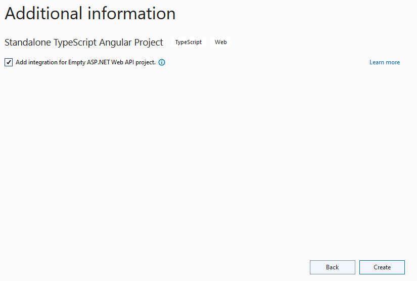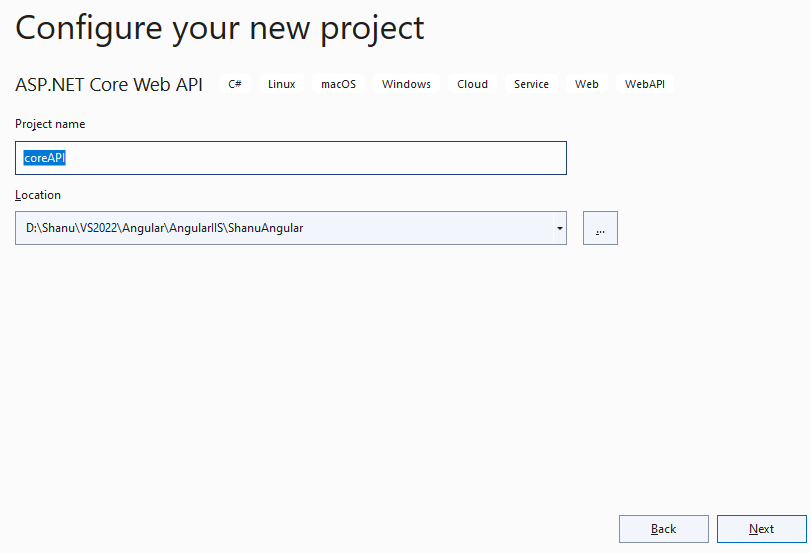 Now let’s create a new ASP.NET Core WEB API project with our Angular Standalone Solution.