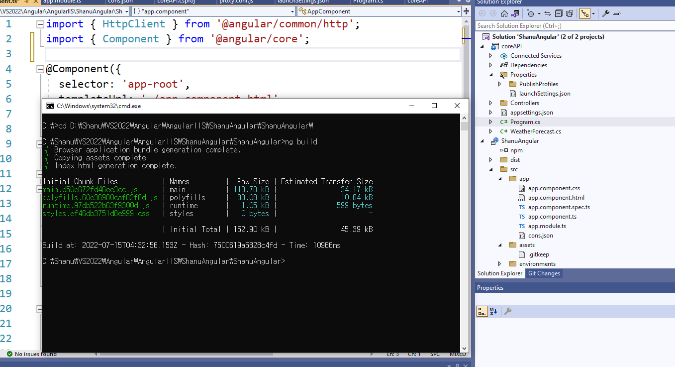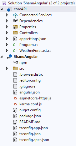 Now we can see as our ASP.NET Core WEB API project has been added under the Angular Standalone project solution.