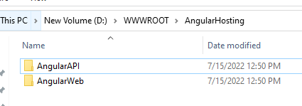 We use the AngularAPI folder to build and publish all our WEB API project. In AngularWeb folder we will deploy our Angular Project.