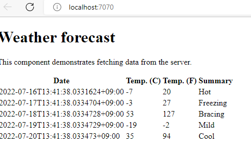 http.get<WeatherForecast[]>(this.conns.ConnString+'weatherforecast').subscribe(result => {