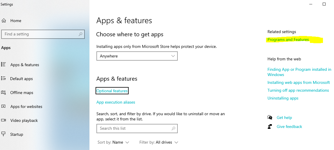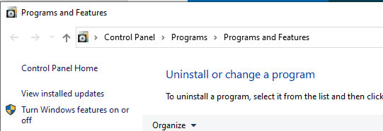 Click Start > Enter Add or remove Programs > Click on Programs and Features