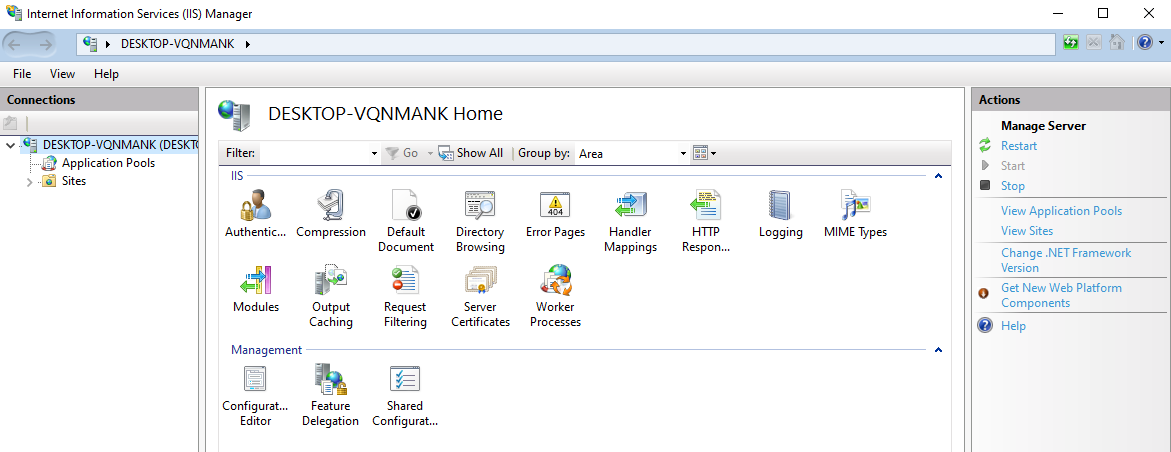 Install and open in in Start > Enter IIS > Open the Internet Information Service.