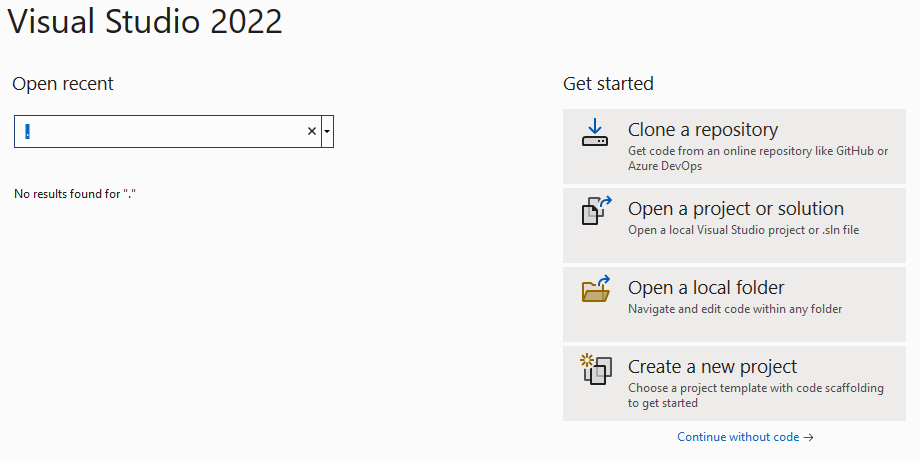 After installing all the prerequisites listed above and click Start >> Programs >> Visual Studio 2022 >> Visual Studio 2022 on your desktop. Click New >> Project.