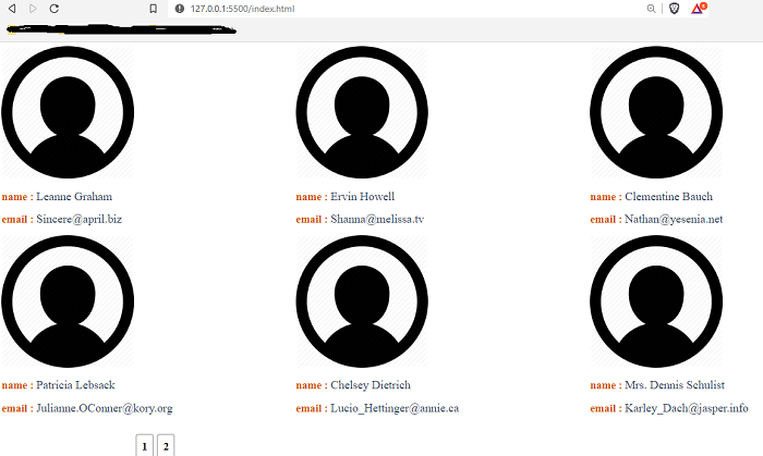 As you can see, we see the API data without pagination. Now, we create the PaginationRender class for rendering six elements per pagination item.