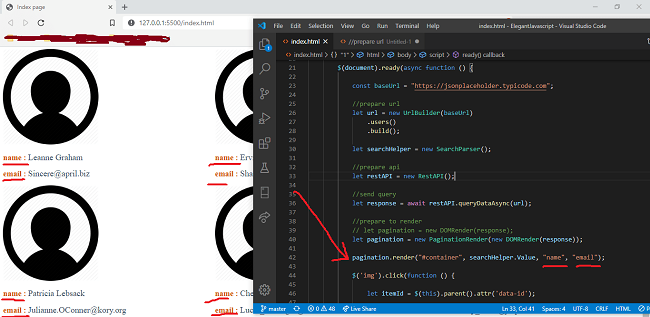 pagination.render("#container", searchHelper.Value, "name", "email");
