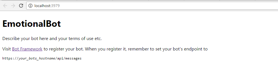 Here, we are developing an application for displaying an emotion using Cognitive Emotion API. It displays output using Bot framework.