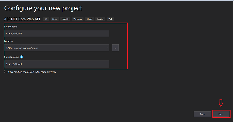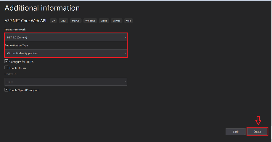 - Create a Web API project with Microsoft Identity Platform - Authentication type