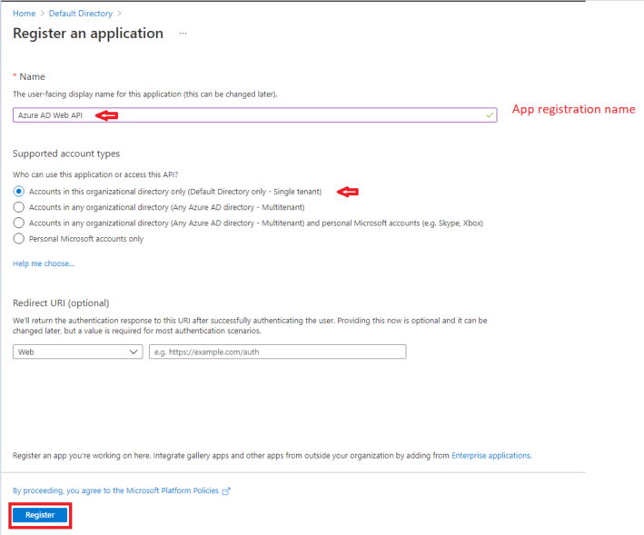 This article will brief you about setting up the Azure Active Directory in the Azure portal and integrate the Azure AD Authentication in our project. First, let's create an Azure Active Directory application that helps in protecting our web app.
