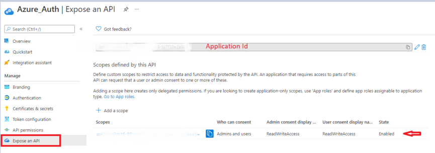 For that select the Expose an API from the Azure _Auth application. Click on the + Add Scope button. where it will open the popup to create the scopes.
