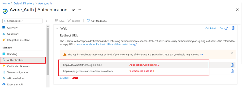 The Authentication type Microsoft.identity.platform helps in the integration of Azure AD and it will add all the basic configuration setup in the respective files.