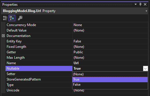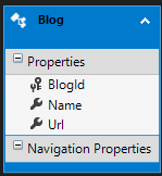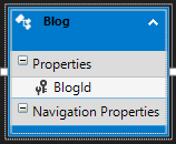 In the Properties window change the Entity Container Name to BloggingContext This is the name of the derived context that will be generated for you, the context represents a session with the database, allowing us to query and save data